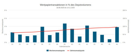 Vom Umsatz der Woche Nr. 45 in Höhe von 0,93 Mio. Euro entfielen 0,43 Mio.- auf Käufe und 0,50 auf Verkäufe.