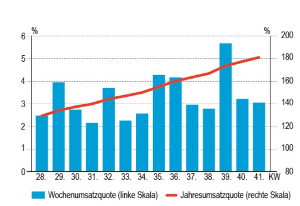 registrierten wir in der Berichtswoche auf der Kaufseite, was in dieser Rubrik neue Jahresbestleistung ist. Bei den Verkäufen waren es 24. Insgesamt belief sich das Umsatzvolumen auf knapp über 21 Mio. Euro, was 3,05 Prozent des gemeldeten Gesamtdepotvolumens entspricht und damit einen Durchschnittswert darstellt. Eine hohe Transaktionszahl kommt in der Regel immer dann zustande, wenn rege mit Aktien gehandelt wird – und so war es auch in der Berichtswoche.