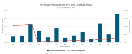 Die Käufe der 11. Berichtswoche mit einem Volumen von 11,78 Mio. Euro verteilten sich auf Fonds (8,35 Mio. Euro), Derivate (1,89 Mio.), Aktien (1,15 Mio.) und Anleihen (0,40 Mio.).