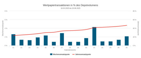 Aber in unseren Handelslisten hinterließ dies keine Spuren: Die Umsatzquote in der Berichtswoche lag mit 2,13 Prozent im langfristigen Durchschnittsbereich, der Umsatz war mit 5,18 Mio. Euro sogar überdurchschnittlich.