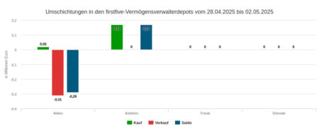 Mit 1,97 Mio. Euro war der Umsatz in der Berichtswoche vom 12. bis 16. Mai etwas geringer als in der Vorwoche, in der 2,35 Mio. gehandelt worden waren. Deutlich geringer waren im Wochenvergleich die für den Newsletter erfassten Assets under Management mit 113,06 Mio. Euro (vs. 267,79 Mio. in W. 19). Deshalb lag in Woche 20 die Umsatzquote mit 1,74 Prozent auch deutlich höher als in Woche 19 mit 0,88 Prozent. Addiert um diesen Wert hinzu, kommt die seit Jahresbeginn kumulierte Quote unserer Ausschnitte 36,90 auf Prozent. Vor einem Jahr, also Ende Woche 20 / 2024, waren es 44,09 Prozent. Gewiss kein uneinholbarer Wert.