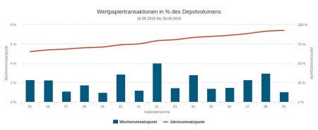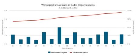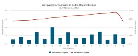 Vom Umsatzvolumen in Höhe von 2,21 Mio. Euro entfielen 1,10 Mio. Euro auf Käufe und 1,11 Mio. Euro auf Verkäufe. Schaut man sich die einzelnen Produktklassen in unserer Grafik zu den Umschichtungen an, dann sieht man sofort, dass dort diese Ausgeglichenheit nicht mehr gegeben ist. Bei Aktien wurde in Reaktion auf fallende Märkte weit mehr abgegeben als neu investiert wurde.