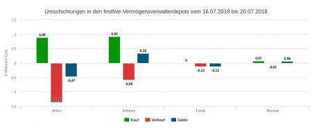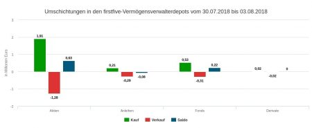 Die Verkäufe der 32. Berichtswoche im Wert von 8,19 Mio. Euro verteilten sich wie folgt auf die einzelnen Produktkategorien: Anleihen (5,91 Mio. Euro), Aktien (2,19), Fonds (0,08) und Derivate (0,02). In unserem absoluten Topverkäufe-Ranking sind die first five nur Festverzinsliche, darunter auch zwei Italienanleihen. Die second five dieser Tabelle bilden hingegen ausschließlich Aktien: 6) Atos; 7) Wolters Kluwer; 8) Veolia Environnement; 9) Henry Schein; 10) Freeport-McMoRan.