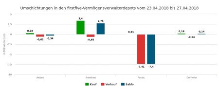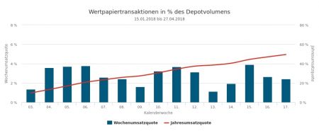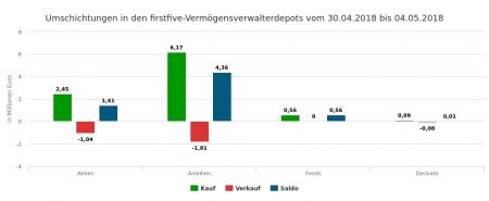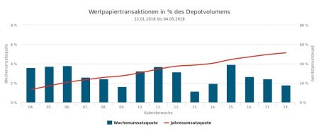 Gemeint ist mit Brückentag der Freitag nach Christi Himmelfahrt, bzw. wie man in Deutschland je nach Region sagt: dem Vatertag, Herrentag oder Männertag. Denn für den Freitag verzeichnet unsere Umsatzliste für die 19. Berichtswoche nur eine Transaktion – bezogen auf die uns ihre Handelsdaten übermittelnden Vermögensverwaltungen. Aber auch die drei ersten Tage der Woche waren nicht gerade ein Handelsfest.