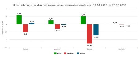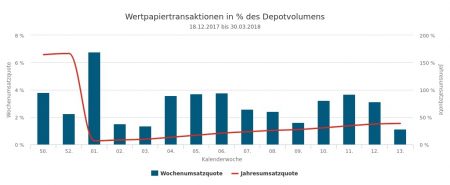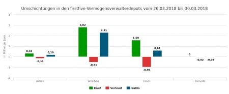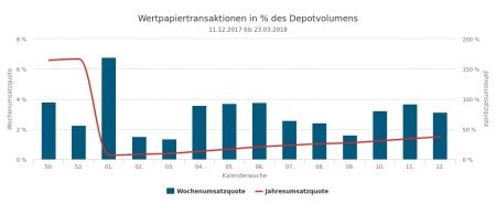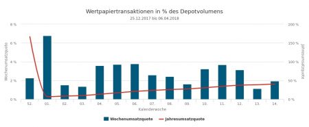Der Handel der 14. Berichtswoche vom 2. bis 6. April 2018 war etwas lebhafter als noch in der Woche vor Ostern. Allerdings waren zum Kaufen und Verkaufen gleichfalls nur 4 Tage Zeit, die Vakanz dauerte ebenfalls noch an – nichtsdestotrotz war das uns von den Vermögensverwaltungen für den Newsletter gemeldete Depotvolumen im Vergleich der letzten Monate mit über 700 Mio. Euro überdurchschnittlich. Deshalb befand sich auch der Umsatz in Höhe von 13,5 Mio. Euro noch im breiteren Durchschnittsbereich.
