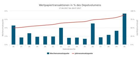 Die Verkäufe der 32. Berichtswoche summierten sich zu einem Volumen von 18,88 Mio. Euro. Dieses teilte sich auf in Fonds (15,43 Mio. Euro), Aktien (3,44) und Derivate (0,01). Mit den Aktienverkäufen konnten überwiegend Gewinne realisiert werden, das galt auch für Fonds, aber in deutlich eingeschränkterem Umfang. Die Fonds, die im absoluten Ranking der Topkäufe das Spitzentrio bilden, kommen insgesamt auf einen Verkaufsumsatz von 15 Mio. Euro.