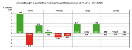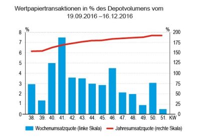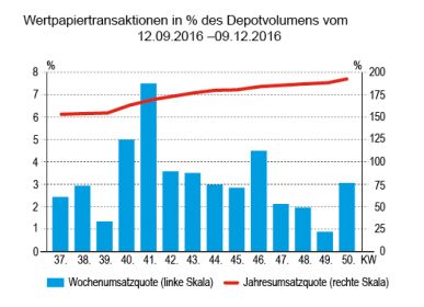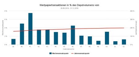 Sieht man sich die Quotenentwicklungen in den Depots über die Jahre hin an, dann erscheint das Jahr 2016 als sehr durchschnittlich. Anders, als es Brexit, US-Wahl und andere „Katastrophen“ erwarten lassen dürften, bewegen sich die Quoten zum Jahresende weitgehend im Normalbereich.
