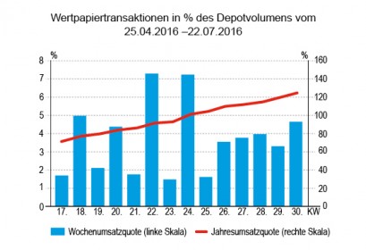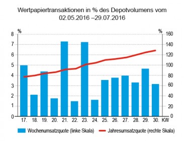 3,15 Prozent des uns von den Verwaltungen gemeldeten Depotvolumens wurden umgesetzt, wobei uns die Daten von Depots im Wert von knapp 623 Mio. Euro übermittelt wurden – was gerade auch in Anbetracht der Sommerferien eine recht ordentliche Meldeaktivität bedeutet.