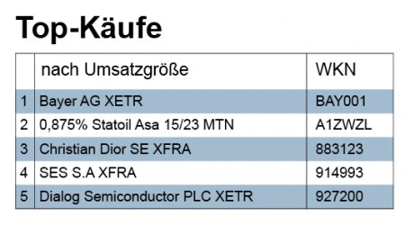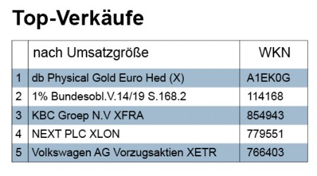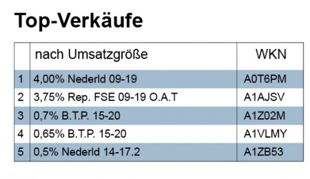Wie bereits erwähnt, stachen dabei Staatsanleihen besonders hervor; dementsprechend sind unter den first five bei den absoluten Top-Verkäufen nur Anleihen europäischer Länder.
