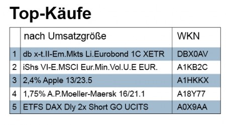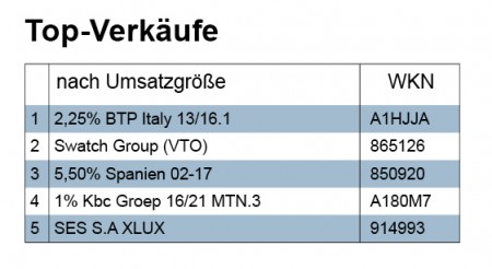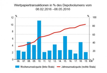 1,75 Prozent des gemeldeten Depotvolumens betrug der Umsatz, das ist schwach, auch im Spiegel des Volumens, denn in der Berichtswoche wurden Werte von insgesamt nicht einmal 9,1 Mio. bewegt.