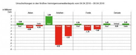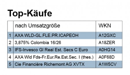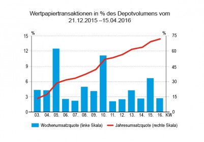 Der eher leicht unterdurchschnittliche prozentuale Umsatz von 2,73% des gemeldeten Depotvolumens entsprach einem absoluten Umsatz von 18,7 Mio. Euro. Die Woche davor hatten wir noch einen sehr viel höheren relativen Umsatz bei geringerem Volumen.