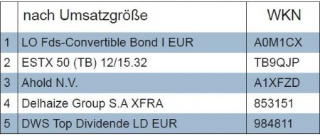 Der Umsatz in der Berichtswoche lag mit 4,17 % der gemeldeten Depots fast auf dem Niveau der Vorwoche. Allerdings waren es dieses Mal nur rund 23 Millionen Euro an Transaktionsvolumen, die