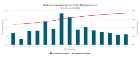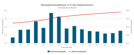Der Verkaufsumsatz in Woche 39 in Höhe von 3,27 Mio. Euro verteilte sich auf Aktien im Wert von 0,58 Mio. Euro und Anleihen mit einem Volumen von 2,70 Mio. Euro.