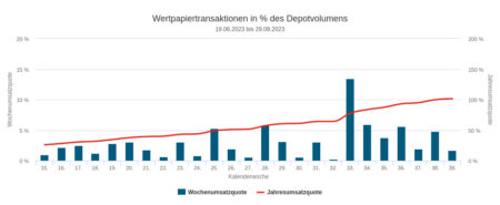In Woche Nr. 37 war die Umsatzquote im Depotausschnitt für den Newsletter mit 4,83 Prozent wieder deutlich über dem langfristigen Durchschnitt.
