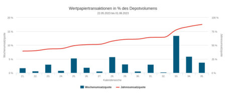 Die Handelsquote war sowohl in der hier zu besprechenden Woche Nr. 35 wie auch im Monat Nr. 8, der in der Berichtswoche zu Ende gegangen ist, überdurchschnittlich (Durchschnitt der Quote liegt bei etwas über 2 Prozent).