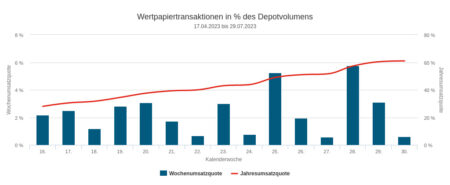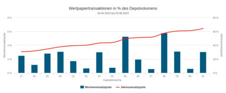 Die Verkäufe in der Berichtswoche summierten sich auf 0,14 Mio. Euro. Davon setzten die erfassten Vermögensverwaltungen durch Aktienverkäufe über 0,12 Mio. Euro um und durch Fondsanteils-Veräußerungen nicht ganz 0,02 Mio. Euro.