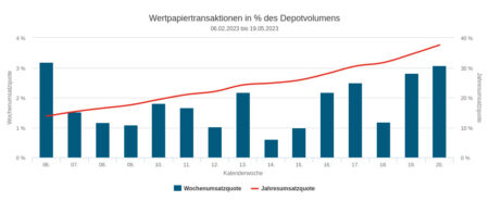 Die Verkäufe in unserem Depotausschnitt der Woche 22 summierten sich auf 0,37 Mio. Euro. Dieses Volumen verteilte sich auf Anleihen (0,20 Mio. Euro), Derivate (0,11 Mio.), Aktien (0,05 Mio.) und Fonds (0,01 Mio.). Auf die drei in unserer Topverkäufe-Liste erstplatzierten Wertpapiere entfiel der größte Anteil des Verkaufsvolumens in der Berichtswoche. Da auf unserer Liste jedoch eine erhebliche Zahl von Verkäufen steht – es waren mehr Transaktionen als auf der Kaufseite –, bedeutet dies, dass die meisten Verkaufstransaktionen außergewöhnlich geringe Beträge hatten.