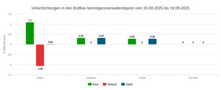 Unser Depotausschnitt für die Berichtswoche gehörte zwar mit Assets under Management im Wert von 55,44 Mio. zu den kleineren Ausschnitten. Aber die hohe Umsatzquote weist auf ein doch nicht allzu kleines Umsatzvolumen: Das betrug 1,88 Mio. Euro.