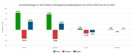 Der Februar war im Jahr 2022 der Monat mit dem höchsten Kaufvolumen und dem höchsten Kaufüberhang. Das Investitionsvolumen im Februar betrug 61 Mio. Euro. bei 17 Mio. Verkaufsvolumen.