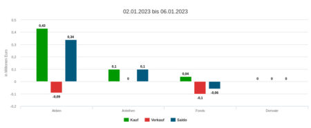 Vom Umsatz in der ersten Woche des Jahres 2023 in Höhe von 0,76 Mio. Euro waren 0,58 Mio. Euro Käufe und 0,19 Mio. Euro Verkäufe.