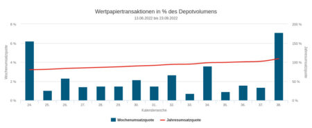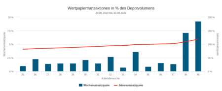In der 40. Woche betrug der Verkaufsumsatz 0,11 Mio. Euro, die sich auf Anleihen (0,07 Mio. Euro) und Fonds (0,04 Mio.) verteilten.