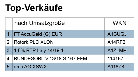Den Spitzenplatz bei den Top-Verkäufen gemäß Volumen nimmt die Transaktion eines Geldmarktfonds ein, die den gesamten Verkaufsumsatz ausmachte. Insofern täuscht der erste Blick über das wirkliche Verkaufsverhalten der Verwaltungen: Die Fondsanteile in den Depots wurden – bis auf diesen „Sonderfall“ – alle gehalten.